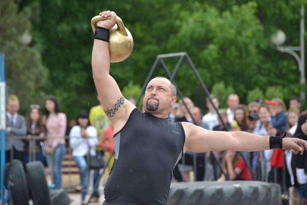 Ваган Джилавян поднимает снаряд весом 70 кг. Фото редакции.