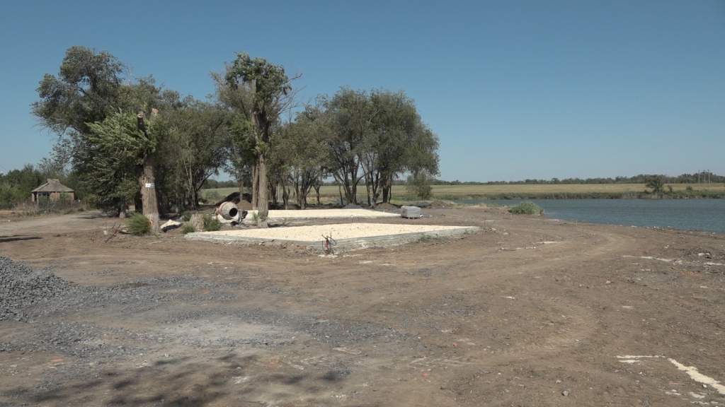 Такой вот парк у воды строят в Гиганте, он разделён на две зоны. На одной стороне будут детские площадки, тренажерные площадки с резиновым покрытием, скамейки для отдыха и пешеходные зоны. На другой стороне волейбольная площадка, зоны беседки под барбекю.