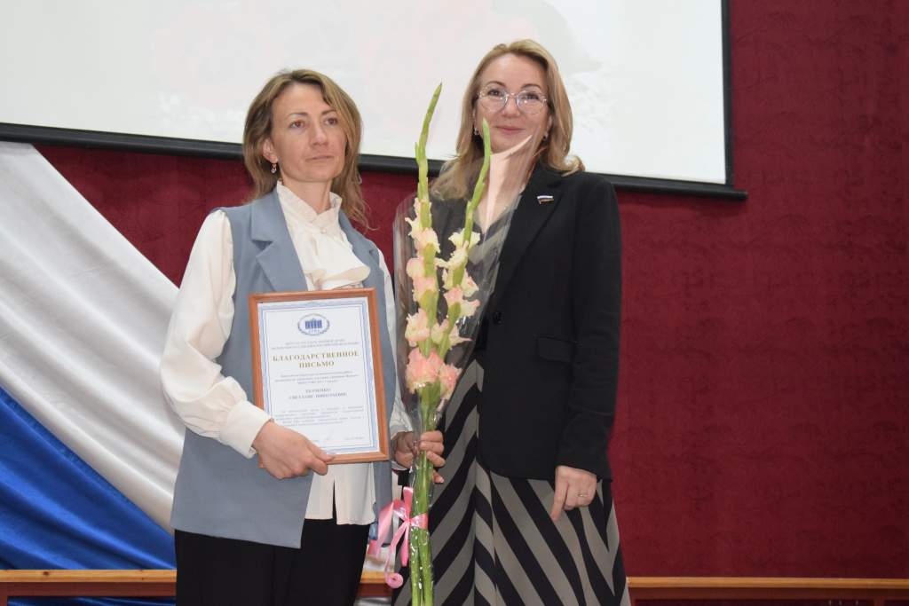 День учителя — это праздник, когда педагогов поздравляют и первоклашки, и депутаты Госдумы. «Добрый день, дорогие мои коллеги! — так обратилась к учителям депутат Государственной Думы, член Комитета Госдумы по просвещению Лариса Тутова». Она призналась, что ни минуты не пожалела, что в своё время выбрала профессию учителя. Лариса Тутова до сих пор тесно сотрудничает с учителями, вместе с которыми участвовала в конкурсе «Учитель года 2011». Она поблагодарила педагогов за поддержку, за их честные и искренние ответы на вопросы, за замечания, которые они высказывают, за предложенные варианты решения возникающих вопросов, за верность профессии и любовь к детям и вручила Благодарственные письма директору школы № 7 Светлане Лысиковой, заместителю директора по воспитательной работе школы № 4 Светлане Ткаченко, старшему воспитателю детского сада № 19 «Ивушка» г. Сальска Татьяне Стениной. Кстати. за прошедший учебный год отраслевыми наградами был отмечен 31 педагог Сальского района.