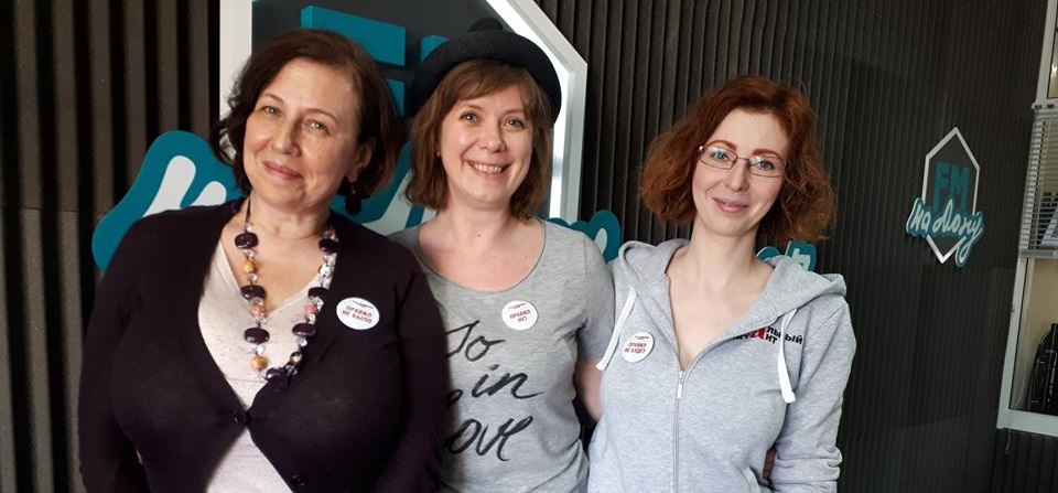 Диктор «Тотального диктанта» Ольга Северская, организатор Мария Ровинская и координатор диктанта в Ростове Кира Дружинина в студии ростовского радио «ФМ-на-Дону». Фото из архива Ольги Северской.