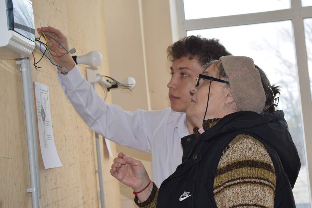А что там с нашим щитом? Гостям предложили самим собрать простейшую электросхему. На эксперимент решились даже мамы и бабушки студентов.