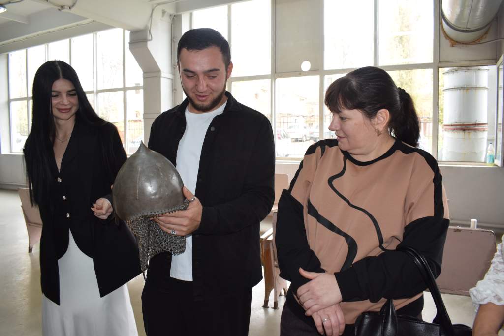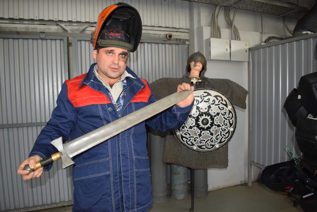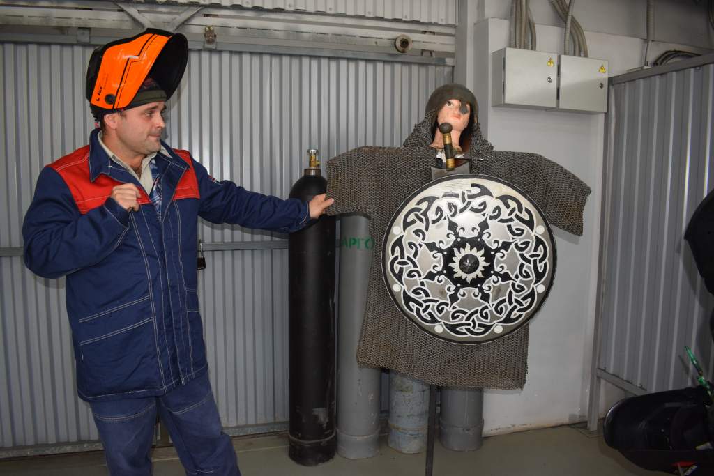 Образцы работы сварщиков показывают студенты и мастер производственного обучения Анатолий Ниговорин. За последние несколько лет ребята своими руками сделали полный комплект амуниции древнерусского богатыря.
