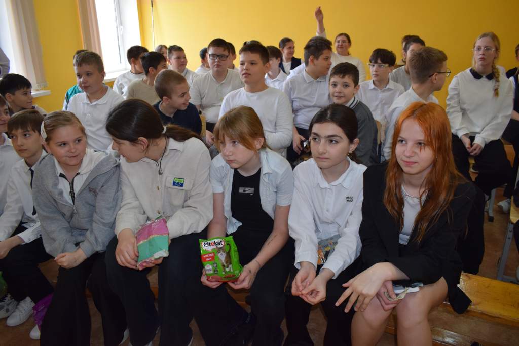 В школе № 7 волонтёр пообщалась с ребятами десятых, одиннадцатых и пятых классов. Заместитель директора по воспитательной работе Маргарита Михайличенко поинтересовалась у пятиклассников, сколько питомцев живёт у них дома. Оказывается, есть семьи, где их по семь-восемь: кошки, собаки и даже попугаи. Сама педагог тоже заботится о животных и помогает волонтёрам. Наверное, поэтому школа № 7 — первая в Сальском районе, где начали поддерживать бездомных и потерявшихся питомцев, ветклиники, где их лечат, стали объявлять сборы на корма. И до сих пор этой традиции не изменяют. А назвали акцию «Лапа помощи».