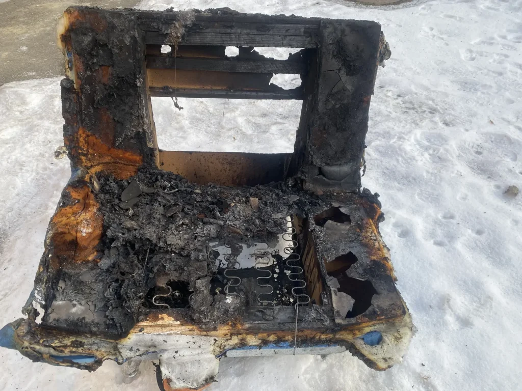 Причина пожара стала понятна позже: оказывается, хозяин оставил на кресле заряженный им до ухода аккумулятор от беспроводной болгарки. Скорее всего, его взрыв повлёк за собой возгорание обшивки кресла.