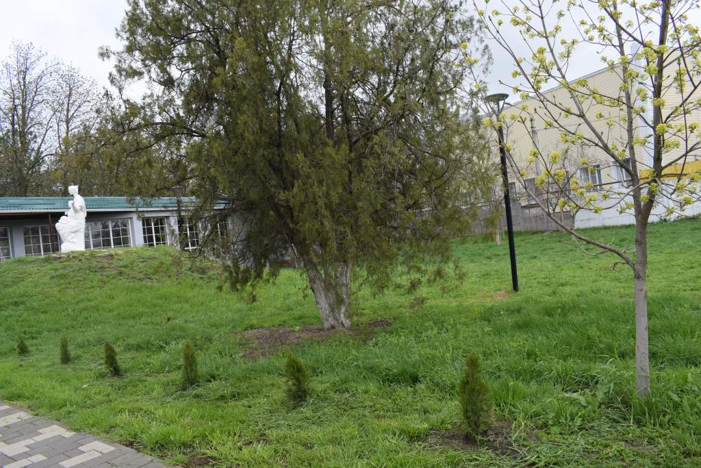К зелёному наряду в парке относятся с особым вниманием. На место не прижившихся или высохших деревьев прошлой осенью высадили новые саженцы — совсем маленькие голубые ели, туи, уже окрепшие сосны. Очень рады в парке, что принялся большой ясень. Приятно удивил парковый газон. Его посеяли несколько лет назад, но если до этой весны прорастал только один вид травы, то теперь появились все пять, которые входят в состав зелёного «коктейля».
