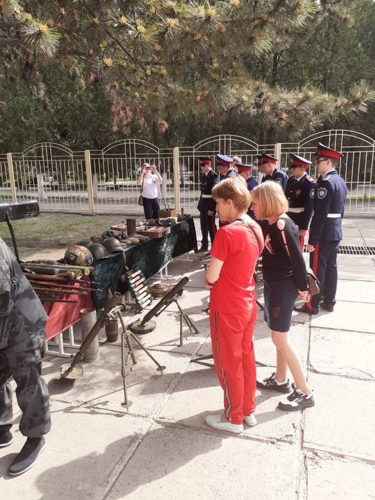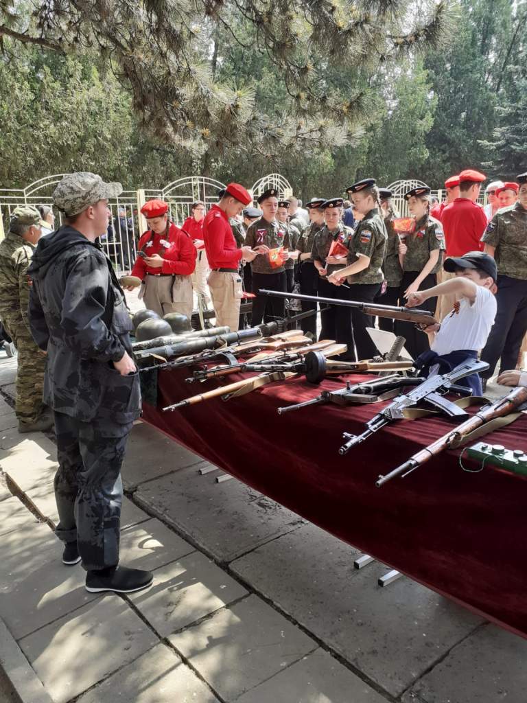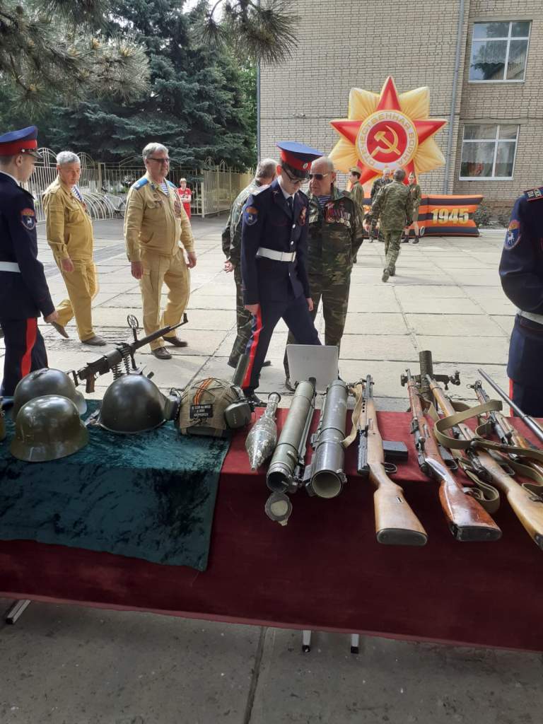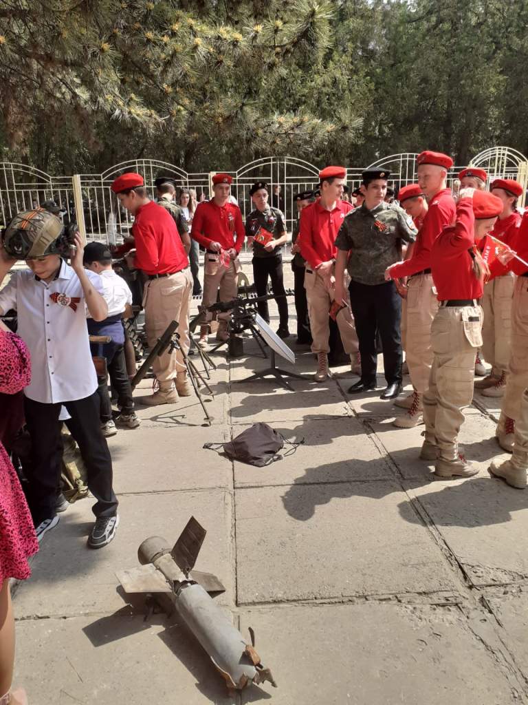 Военную экспозицию благодаря поисковикам «Миус-фронта» у себя в образовательных учреждениях увидели также учащиеся городской школы № 5 и школы № 51 с. Березовка. Ребята с большим интересом осматривали выставку, фотографировались, с удовольствием вместе с артистами «фронтовой бригады» Автоклуба № 1 РДК им. Р.В. Негребецкого пели песни Великой Отечественной войны. Всё это создало приподнятое настроение, делая День Великой Победы праздником всех поколений.