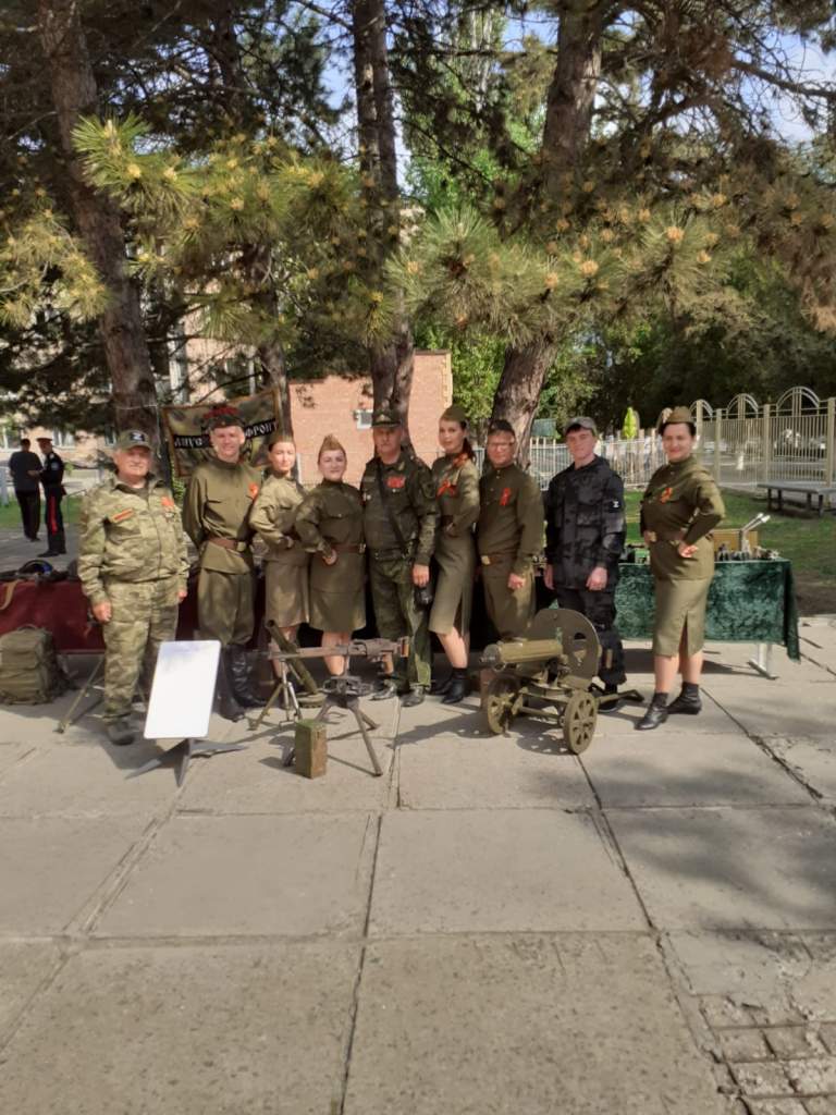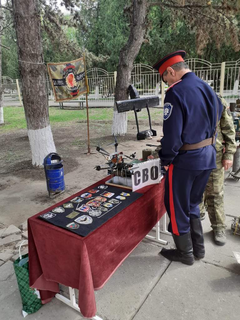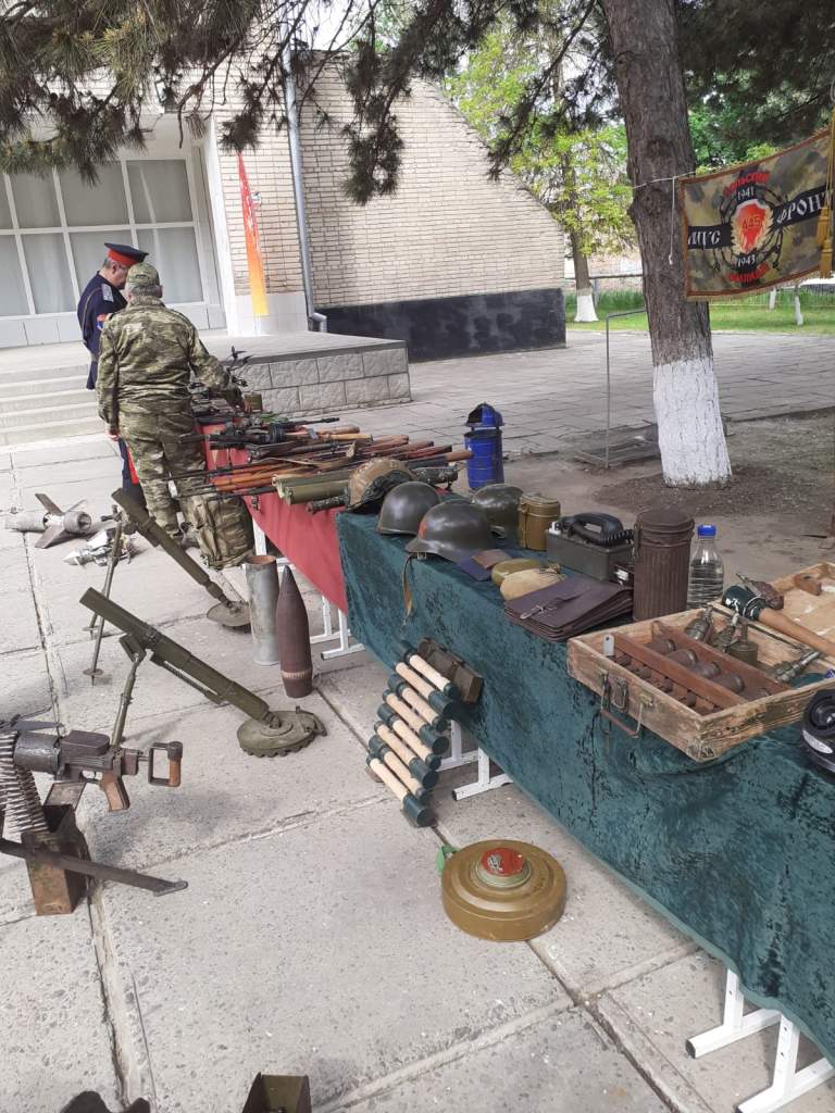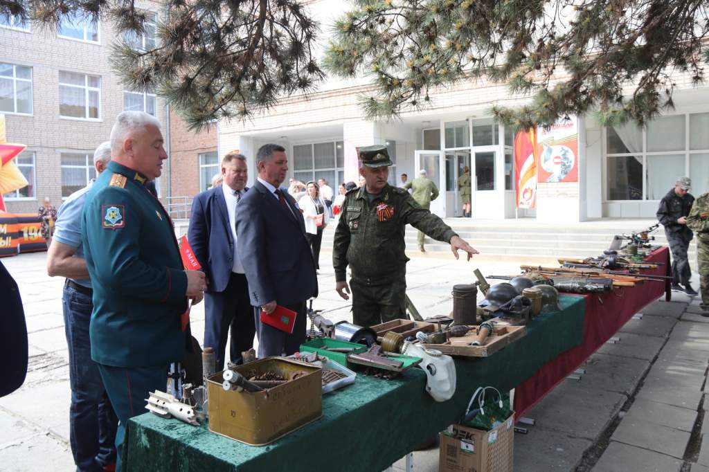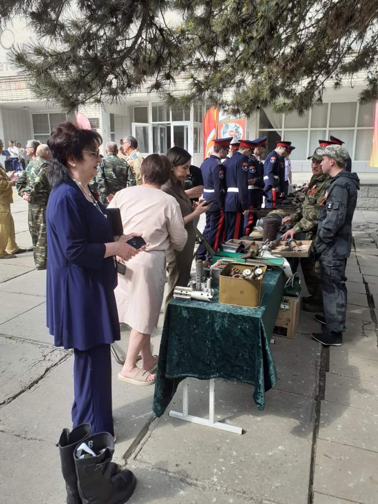 У здания ДШИ им. В.Н. Еждика поисковики организовали выставку оружия и других артефактов, поднятых ими во время поисковых вахт на местах боёв Великой Отечественной войны. С ними соседствовали образцы современного оружия и боеприпасов, атрибутика, которые используют наши военнослужащие в зоне СВО. Экспозицию могли осмотреть все желающие. Пришли кадеты СККПЛ, юнармейцы, школьники и студенты, старшее поколение сальчан.