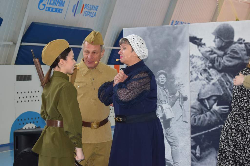 Артисты клуба «Навстречу Победе» представили свою литературно-музыкальную композицию «Хотят ли русские войны?». «Перед тем как писать сценарий, я пообщался с историками и краеведами, перечитал воспоминания участников тех событий. Рассказ Героя Советского Союза Николая Ивановича Филоненко натолкнул меня на создание сцены ухода добровольцев на фронт. И сцена приезда в госпиталь фронтовой бригады артистов — тоже была «подсмотрена» в воспоминаниях Николая Филоненко», — рассказал заведующий Автоклубом № 1 и руководитель Центра «Навстречу Победе!» Дмитрий Сударкин. Великие художественные произведения о войне помогли сделать композицию ещё более яркой и ёмкой. Через всю программу красной нитью проходит тема романа Михаила Шолохова «Они сражались за Родину».