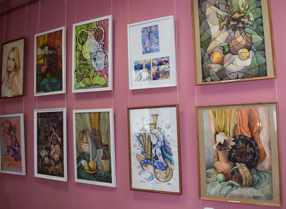 В коридоре — работы моих выпускников прошлых лет. Горжусь, что могу представить работы моих детей — Светланы и Платона. Дочь учила студентов дизайну костюмов, а сейчас вернулась к работе с детьми в своей студии в Ставрополе. Платон успешно работал в Ставрополе и Ростове, теперь занимается дизайном в Батайске.