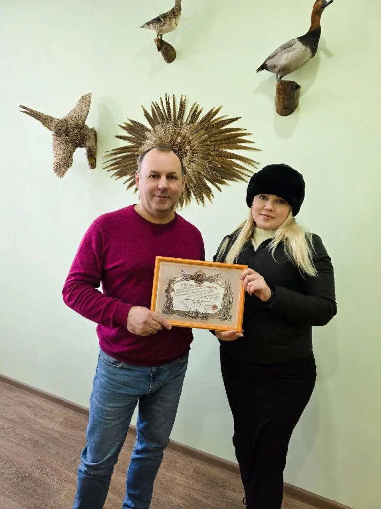 По возвращении из поездки волонтёр вручила Благодарственные письма председателю правления Сальского районного общества охотников и рыболовов Андрею Прокопенко и предпринимателю Хасану Музафарову.